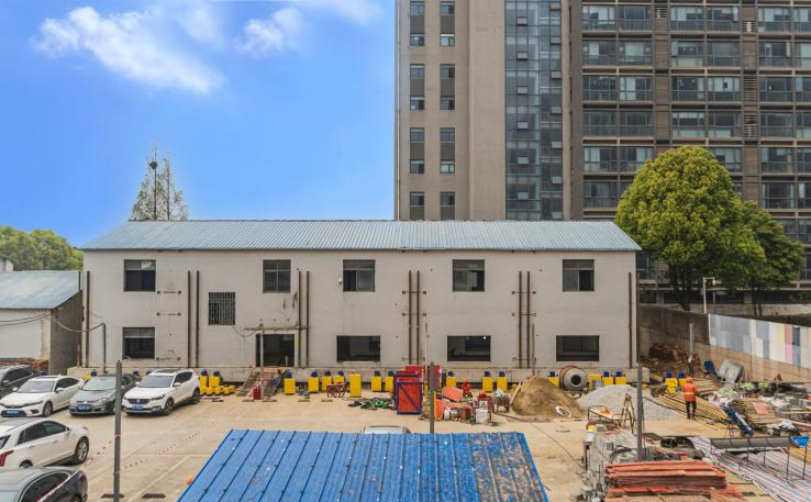 本工程試驗于2023年實施。巨成公司總部園區內一棟兩層砌體結構樓,用該建筑進行群控同步頂升工程試驗,試驗用一個群控站控制三個集控站,每個集控站控制8個數控泵站,驅動32個液壓千斤頂。總共控制24個數控泵站,驅動96個液壓千斤頂,將砌體結構頂升兩層,第一層5.1m,第二層4.2m,向上整體頂升9.3m,歷時三個月。同步的誤差小于1mm,試驗取得圓滿成功,該試驗是全世界首次使用鋼滑道頂升技術進行的試驗,把頂升工程變為100%的安全,造價只有傳統方法的十分之一,并且比傳統的頂升速度快了4倍。