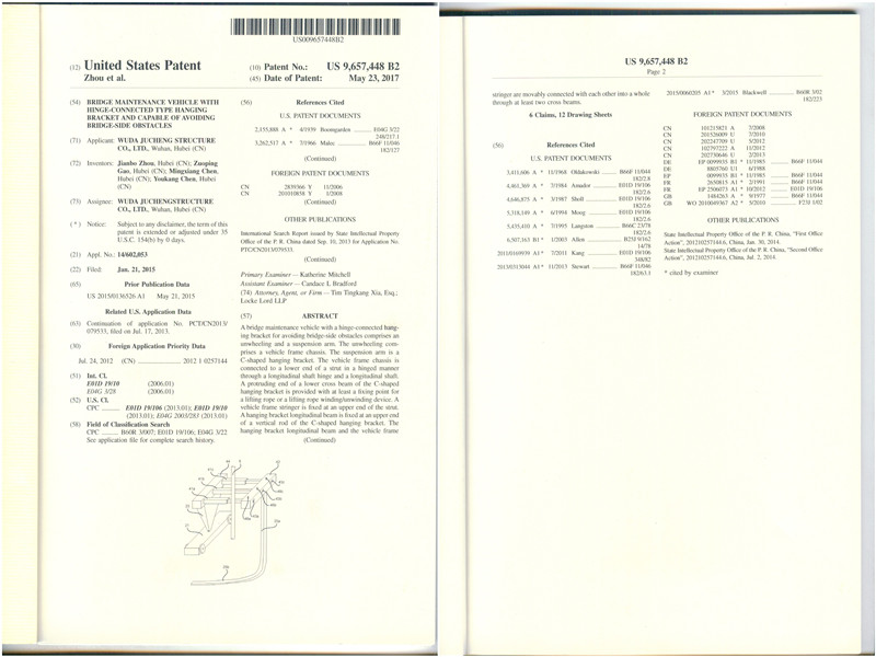 熱烈祝賀我公司不封道橋梁檢修架車發明專利獲美國授權。該專利于2013年通過PCT分別進入美國和歐洲進行專利申請,并于今年獲得美國授權。據悉,在歐洲的專利申請也進行到后期答復階段,相信不久將傳來捷報。