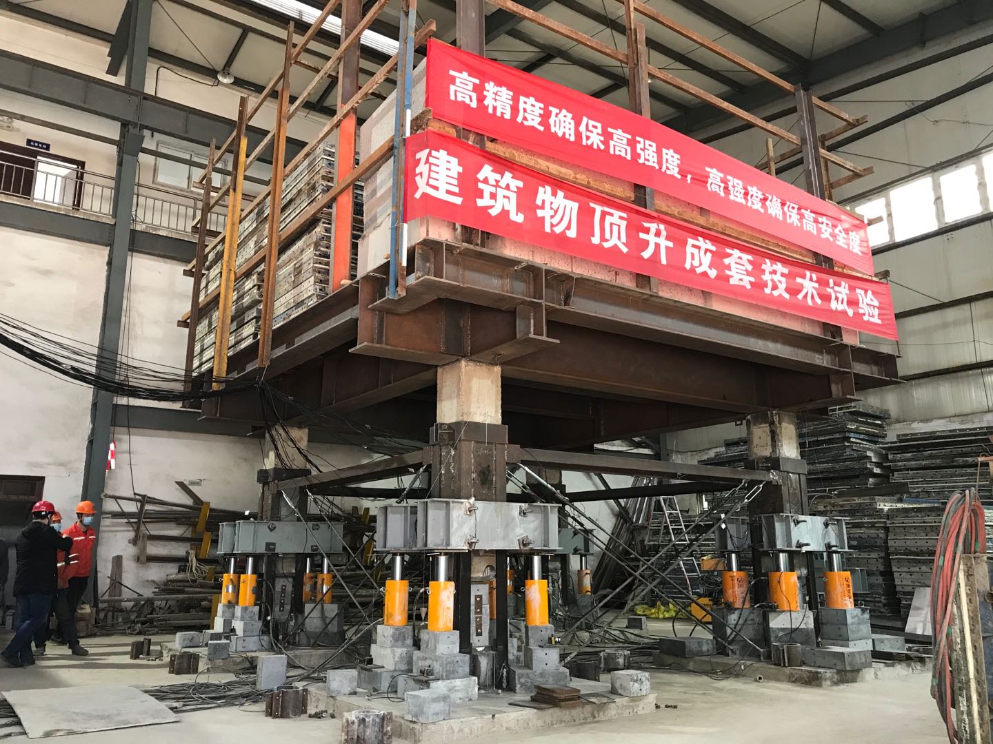 頂升試驗(yàn)當(dāng)天,公司董事長(zhǎng)兼研究院院長(zhǎng)高作平教授親自到現(xiàn)場(chǎng)指導(dǎo)工作,再次強(qiáng)調(diào)“高精度確保高強(qiáng)度,高強(qiáng)度確保高安全度”,并指出該項(xiàng)試驗(yàn)是公司重大科技創(chuàng)新項(xiàng)目,在建筑物空間擴(kuò)展方面走在前沿,應(yīng)以科學(xué)嚴(yán)謹(jǐn)?shù)膽B(tài)度完成試驗(yàn)。