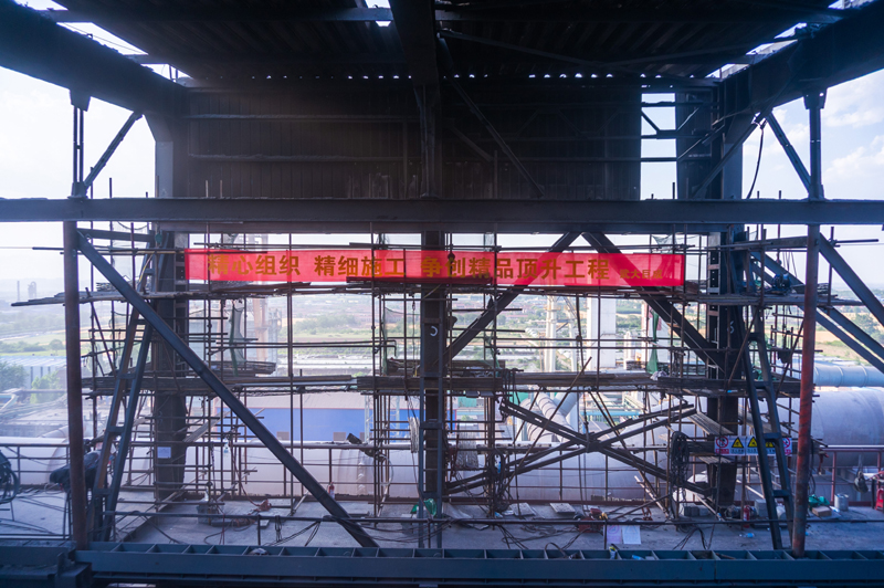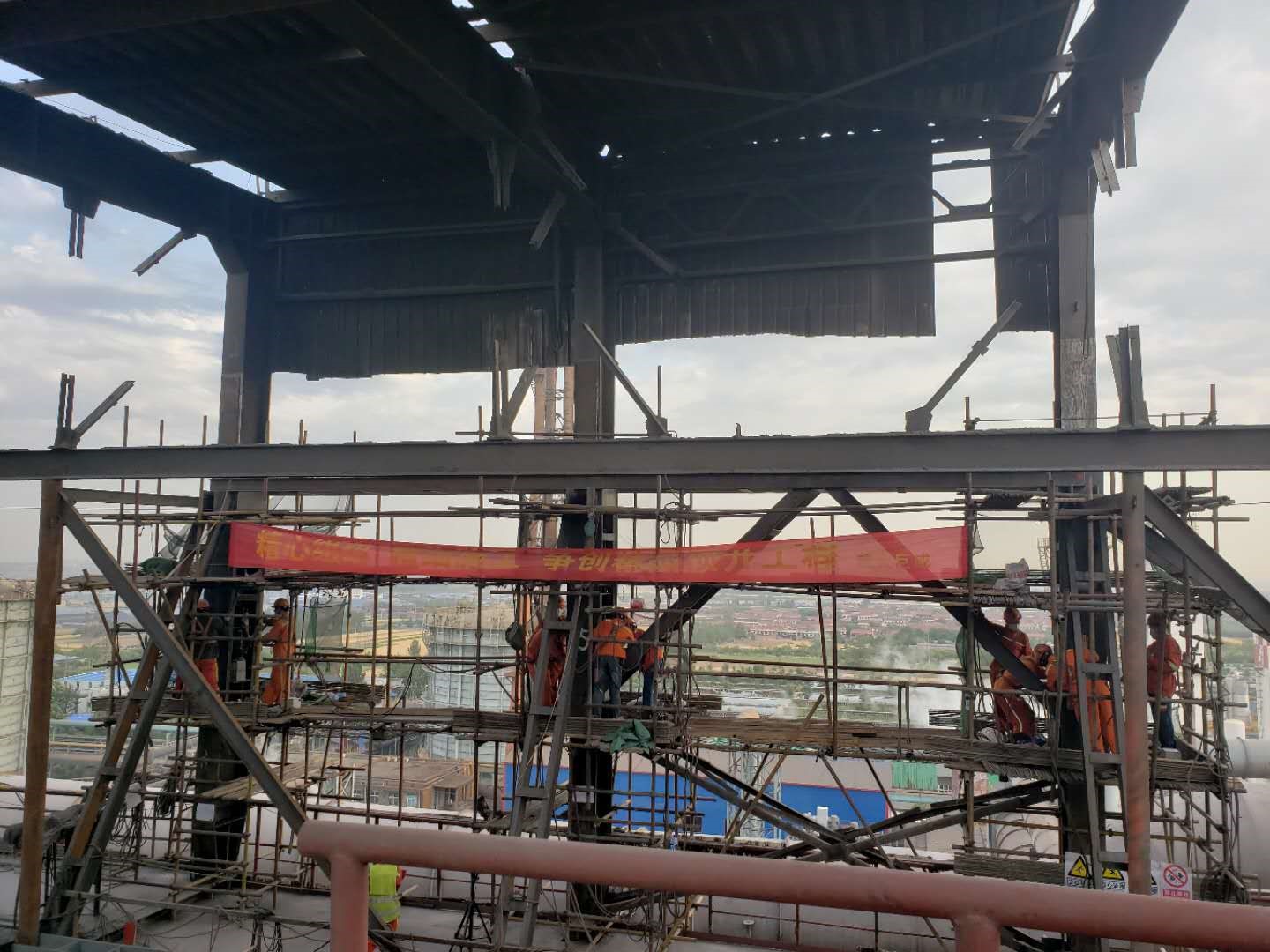 工程中鋼結(jié)構(gòu)框架位于煉鋼廠房最頂層的復(fù)雜環(huán)境,加上煉鋼廠房各層不停產(chǎn),交叉作業(yè)較多,現(xiàn)場溫度高,工作難度非常大。為了確保頂升順利實施,公司領(lǐng)導(dǎo)對可能遇到的困難高度關(guān)注,從方案討論、圖紙設(shè)計、到施工組織每一步都精心控制。董事長高作平教授親自指導(dǎo)工作,指出鋼滑道頂升既有建筑物是巨成的獨創(chuàng)核心科技,本工程是該技術(shù)的創(chuàng)新應(yīng)用,務(wù)必做到安全可靠,為鋼滑道頂升既有建筑物規(guī)程的編制積累數(shù)據(jù)。公司派出了強大的設(shè)計和安全團隊為現(xiàn)場提供有力的技術(shù)支持。在第一個頂升日中,原計劃需耗時一整天頂升量60公分的工作,僅僅用時兩個小時就順利完成。超出了所有人的預(yù)期,獲得了業(yè)主、監(jiān)理等各方的喝彩。頂升工程最關(guān)鍵的是安全問題,項目組在接下來的工作中穩(wěn)扎穩(wěn)打,不畏辛勞,乘勝追擊,在頂升間歇期做好所有焊接和安全工作,至6.1日按計劃順利完工。
