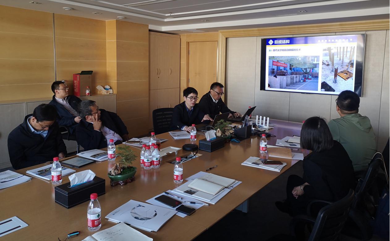 會上張秦部長詳細介紹了中國建研院和建研科技的情況。建研科技由中國建筑科學研究院控股,是由原中國建研院結構所、抗震所、軟件所、材料所改制而成的高新技術企業。建研科技在國家標準、課題研究、國家重點實驗室、行業學術組織等方面具有顯著優勢,為眾多地標性建筑提供技術支撐。廖杰洪博士介紹了巨成公司的發展歷程、業務范圍、特有技術等,重點介紹了擴孔自鎖錨固技術和城市空間綜合改造技術。雙方對城市空間綜合改造技術進行了熱烈的討論,并在規程編制、技術推廣與應用等方面提出了合作意向。