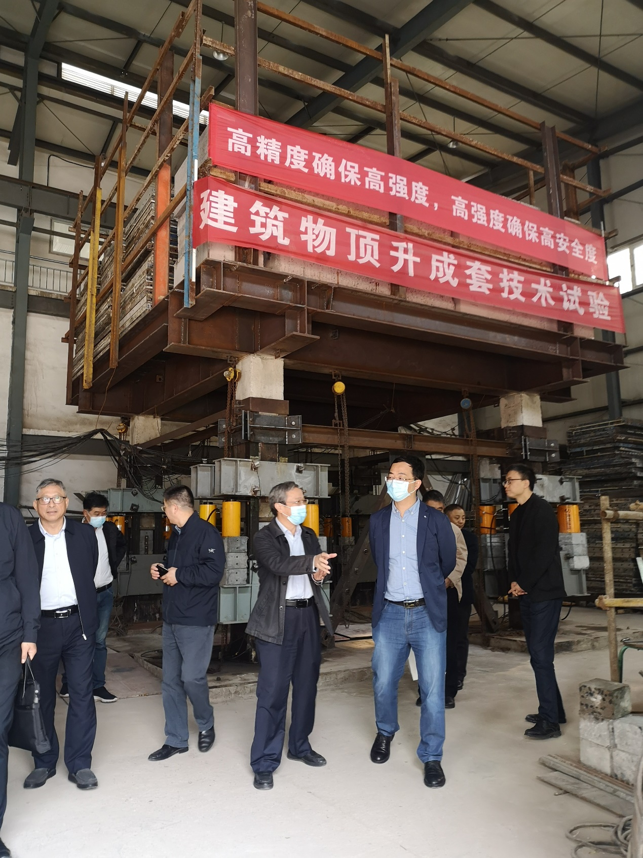陳萬波董事長一行在公司總經理萬雄衛(wèi)、設計公司總工程師吳博的陪同下參觀了巨成頂升試驗項目、自鎖試驗項目,以及公司專為豐電三期擴建項目開展的鋼平臺試驗和面層混凝土試驗現(xiàn)場。陳萬波董事長一行認真聽取了公司核心技術——頂升、自鎖試驗項目的情況,充分肯定了該兩項核心技術在建筑技術改革、造福人類方面的重大意義。