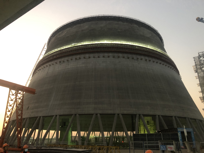 豐城電廠#7冷卻塔加固項目于2020年10月8日正式開工,計劃工期6個月。施工內容是完成30節筒壁加厚,施工標高35m-72m。項目工期緊,施工難度大,公司極為重視,總經理萬雄衛、監事會主席閔啟武多次到現場協調外部工作。工程公司經理王臻瑜常駐現場,現場辦公,大大提高了工作效率。質安總監胡正彥亦多次到現場指導工作,進行安全、質量監管與指導。公司領導輪番督陣,給項目部提供大力支持、全面保障、糾正管理偏差,鼓勵項目部大膽工作,在確保安全和質量的前提下,加快進度。