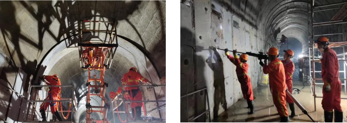 此次大會戰采用的方案為巨成首創,早在2013年廈深鐵路跨三棵松隧洞時,巨成就率先提出了內襯鋼板+植筋的方案,得到了專家的一致認可,在25天的工期內完成了三棵松B隧洞的加固工作,收獲了時任市委書記“鐵軍”的美譽。自此,巨成智慧在三棵松C隧洞、碧嶺隧洞、長嶺陂隧洞、清水河隧洞開始綻放光芒。