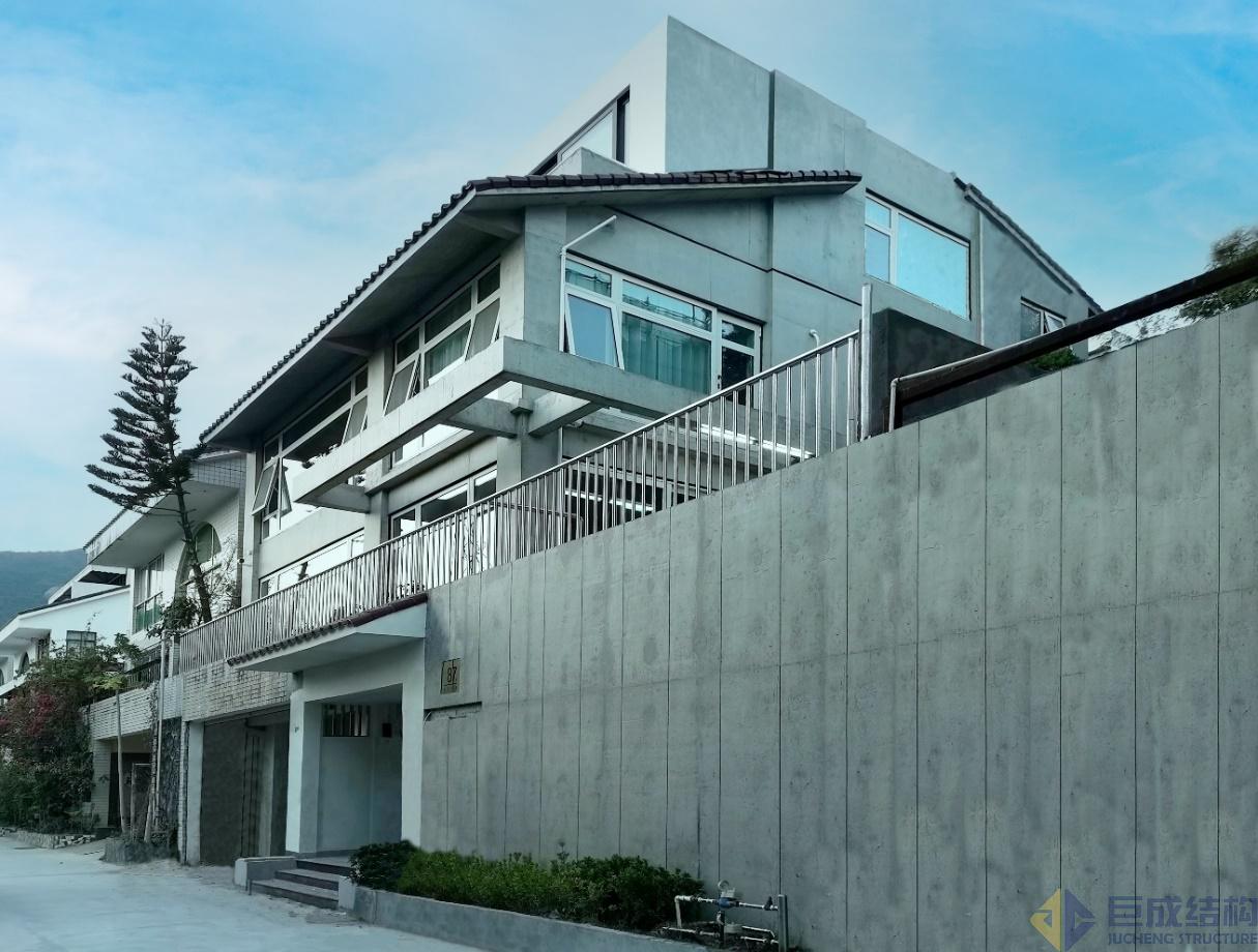 海邊別墅建于2009年,2020年業主進行改造,房屋結構受損、外觀破敗、建筑布局不理想。巨成結構對其進行整體改造,運用現澆及后澆清水混凝土技術,在加固改造的同時達到裝飾的效果,房屋、大海、山色渾然天成,成為小區內亮點。