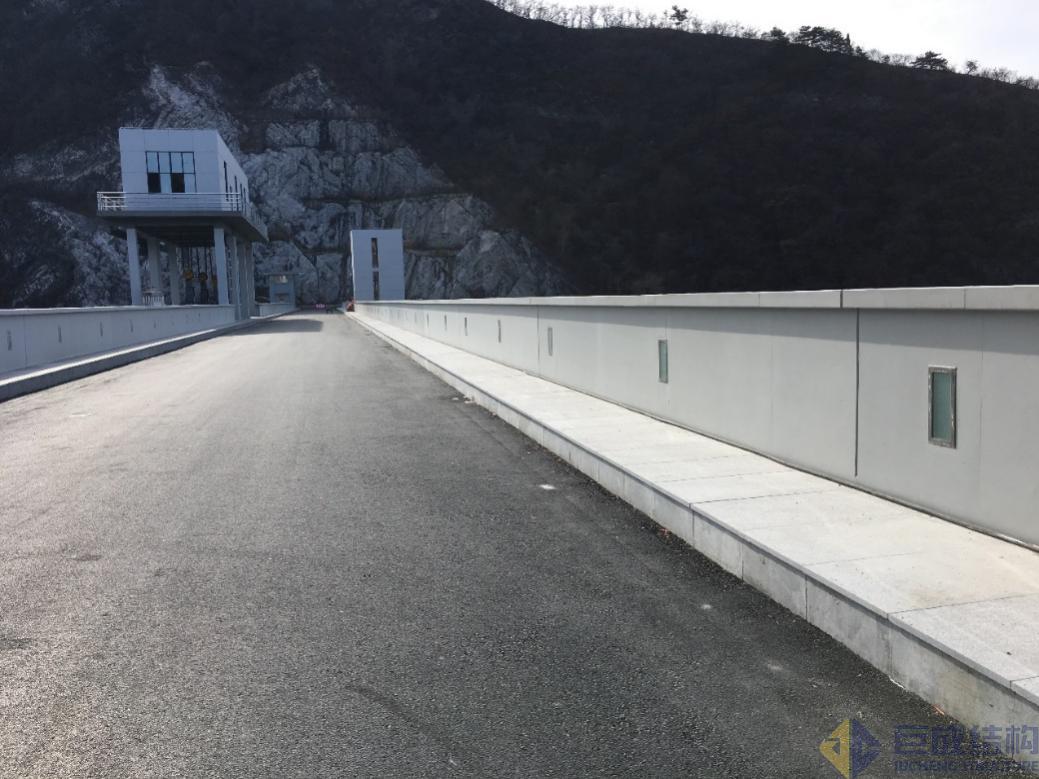 觀音閣水庫是東北著名的大型水庫,壩頂建筑彩鋼板銹蝕嚴重,大壩其它位置外立面也較為破敗。遼寧省相關領導在了解清水混凝土效果后,認為符合觀音閣大壩整體風格。2016年委托巨成結構對其進行改造。溢流壩啟閉機室外墻采用現澆清水混凝土,大壩采用涂裝清水混凝土,防浪墻采用后澆清水混凝土。大壩改造后山水渾然天成,水庫成為4A級景區。