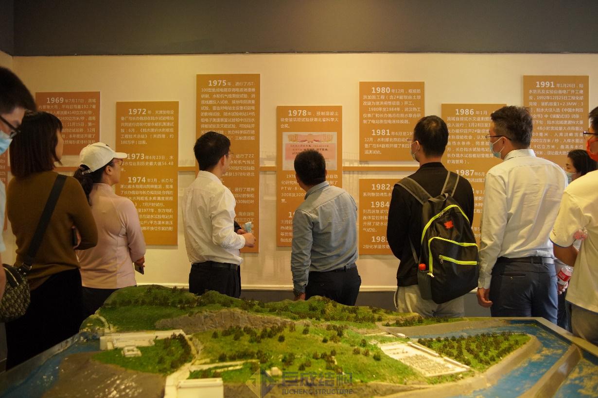 1958年,經毛澤東主席、周恩來總理批準,在陸水興建大型水利水電綜合試驗壩,即“三峽試驗壩”。這是中國水利史上第一次采用大塊體預制安裝筑壩施工方法的試驗。在陸水水利樞紐管理局張俊文主任的帶領下,全體新員工了解了陸水水庫歷史、地理淵源、水庫建筑概況及我國水情歷史及重要水利設施等,并結合陸水水庫真實改造工程案例,向巨成新員工講解了水庫加固改造的技術難點及方式方法,讓大家切身看到了水工建筑的改造重要性以及巨成在水工改造方面的領先技術和水平。隨后,新員工們還參觀了三峽試驗壩主題景區,感受那段“敢于創新、勇攀高峰”的難忘歷史......