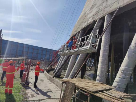 山東天源熱電有限公司三電廠2#涼水塔加固項(xiàng)目,位于山東省淄博市桓臺縣馬橋鎮(zhèn),2011 年投入使用,為5500㎡的雙曲線自然通風(fēng)涼水塔,總高度為 115.00m,塔筒外壁涂裝21382㎡,內(nèi)壁涂裝21230㎡,合同總造價(jià)為1565.5萬元。本工程從2021年8月8日開始施工,預(yù)計(jì)將于2022年6月底完工。
