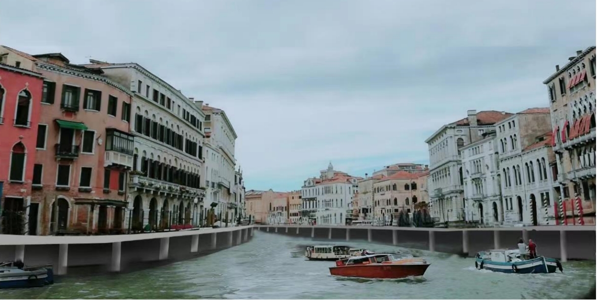 基于此,利用鋼滑道頂升技術還可能使像威尼斯水城等國際國內瀕臨淹沒的重要城鎮通過頂升得到保護。如圖3為威尼斯水城整體頂升改造方案效果。