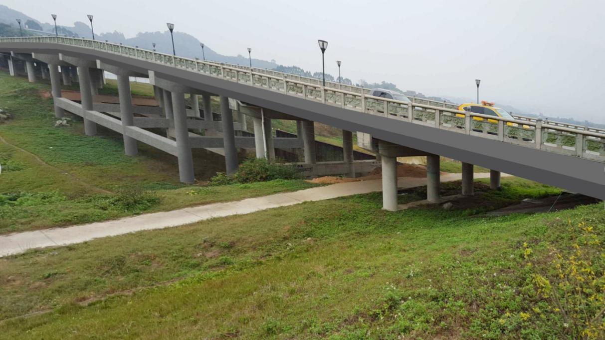 橋梁的頂升改造主要包括橋下增加船閘、結構整體頂升增高空間等,比如城市立交橋、交通橋梁的頂升等。圖1為廣州市某交通橋梁的頂升方案。