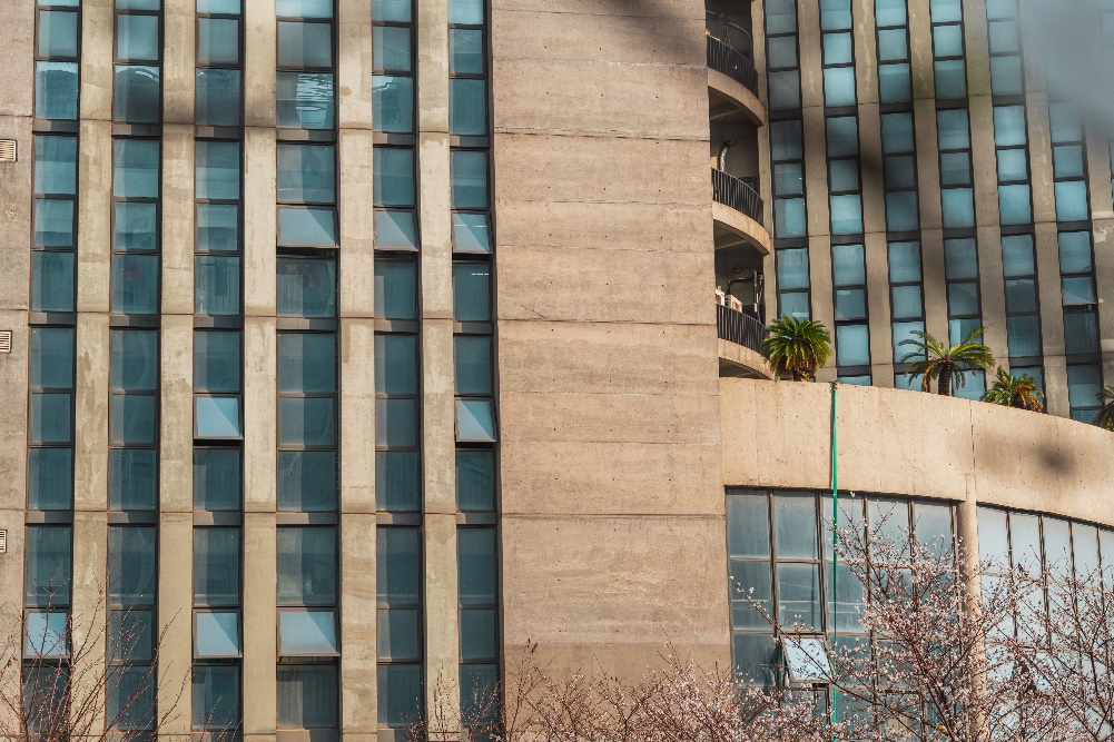 極具建筑現代主義風格的清水混凝土外觀是巨成大廈的第二大特色。在這座湖北省第一棟清水混凝土高樓里,巨成一共成功應用了三種實現清水混凝土的技術。首先,在大樓的剪力墻上采用巨成專利-后澆面層清水混凝土技術,使大樓外觀整片墻體顯現出清水混凝土的建筑風格;其次,巨成大廈外立面的玻璃幕墻之間的線條建造成預制清水混凝土構件,工廠預制、紅外放線,現場組裝垂直度偏差僅千分之一;最后,在不起眼的巨成大廈弧形陽臺處也采用了一種仿清水混凝土工藝——清水混凝土飾面砂漿;在此基礎上所有的清水混凝土表面均涂刷了清水混凝土保護涂料以保證其耐久性,每次下雨后,被雨水沖洗過的大樓外立面極其干凈亮麗,與大自然融為一體,真正體現了建筑與生態的一體化。通過巨成大廈的成功示范,巨成的面層清水混凝土技術及其清水混凝土保護涂料已廣泛應用于道路、橋梁、民用及工業建筑等多個方向。