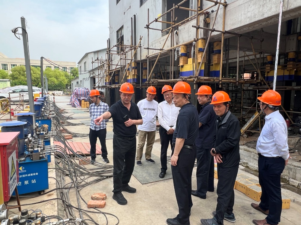 郭生練主席一行參觀了巨成群控同步頂升工程試驗,聽取了巨成副總經理張暢對該項試驗的詳細介紹。領導一行深入到試驗現場,詳細了解試驗各項創新技術, 并結合城市更新、水利方面等運用提出了很多指導意見和建議。副總經理張暢向各位領導介紹了巨成該項技術目前已經成功應用在南水北調渡槽頂升、小區糾偏頂升、廠房改造等方面。各位領導對巨成群控同步頂升技術的創新和對社會發展的巨大意義給予了高度評價。