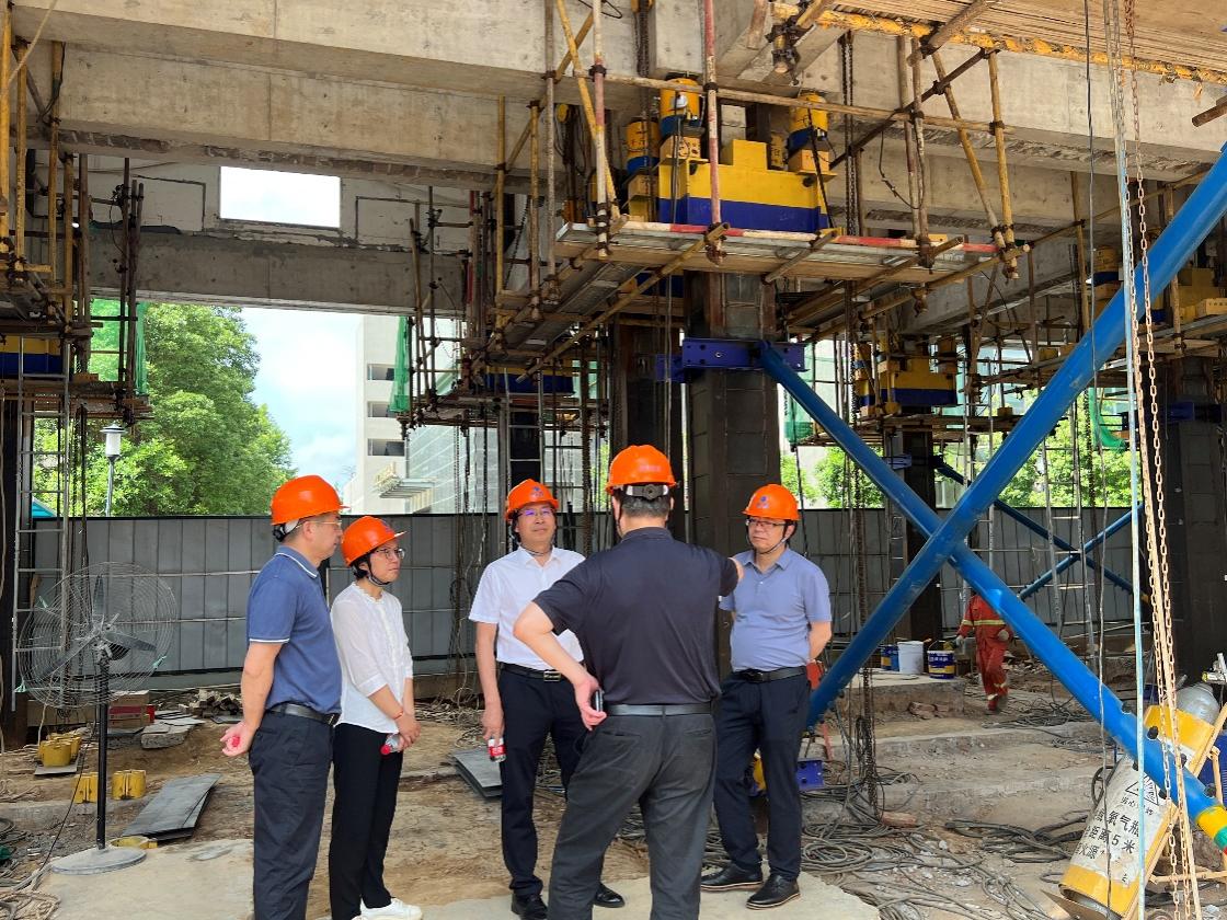 5月31日上午,武漢工程大學副校長馬小龍、基建與維修處副處長楊翠萍蒞臨巨成公司,重點參觀巨成群控同步頂升工程試驗。巨成董事長高作平、總經理萬雄衛、副總經理張暢參加接待。