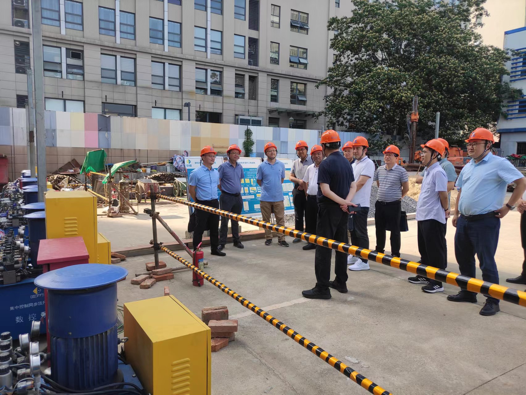 陳總一行首先考察了巨成群控同步頂升工程試驗項目現場,副總經理張暢介紹了頂升試驗的背景、目的和群控同步頂升大型數控設備以及頂升應用前景。雙方對鋼滑道頂升技術和應用場景展開了深入的討論和交流,大家一致認為巨成群控同步頂升技術能夠在城市更新、老舊小區改造以及橋梁頂升等領域發揮重大作用。