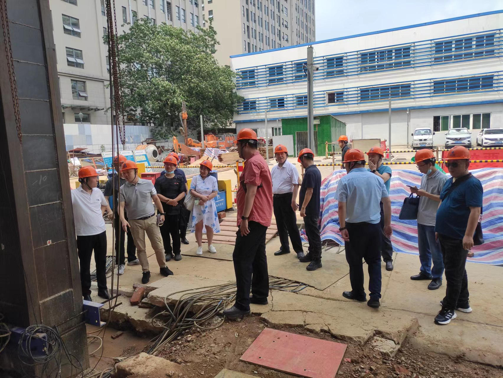 楊德斌董事長一行參觀了巨成群控同步頂升工程試驗項目現場,武漢代表處主任龍舟介紹了頂升試驗的背景、目的和群控同步頂升大型數控設備以及頂升應用前景。雙方對鋼滑道頂升技術和應用場景展開了深入的討論和交流,大家一致認為巨成群控同步頂升技術能夠在城市更新、老舊小區改造等領域發揮重大作用。