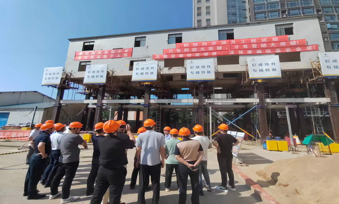 在巨成群控同步頂升工程試驗項目現場,副總經理張暢詳細介紹了頂升工程試驗。專家就試驗細節進行了詳細的了解與討論。