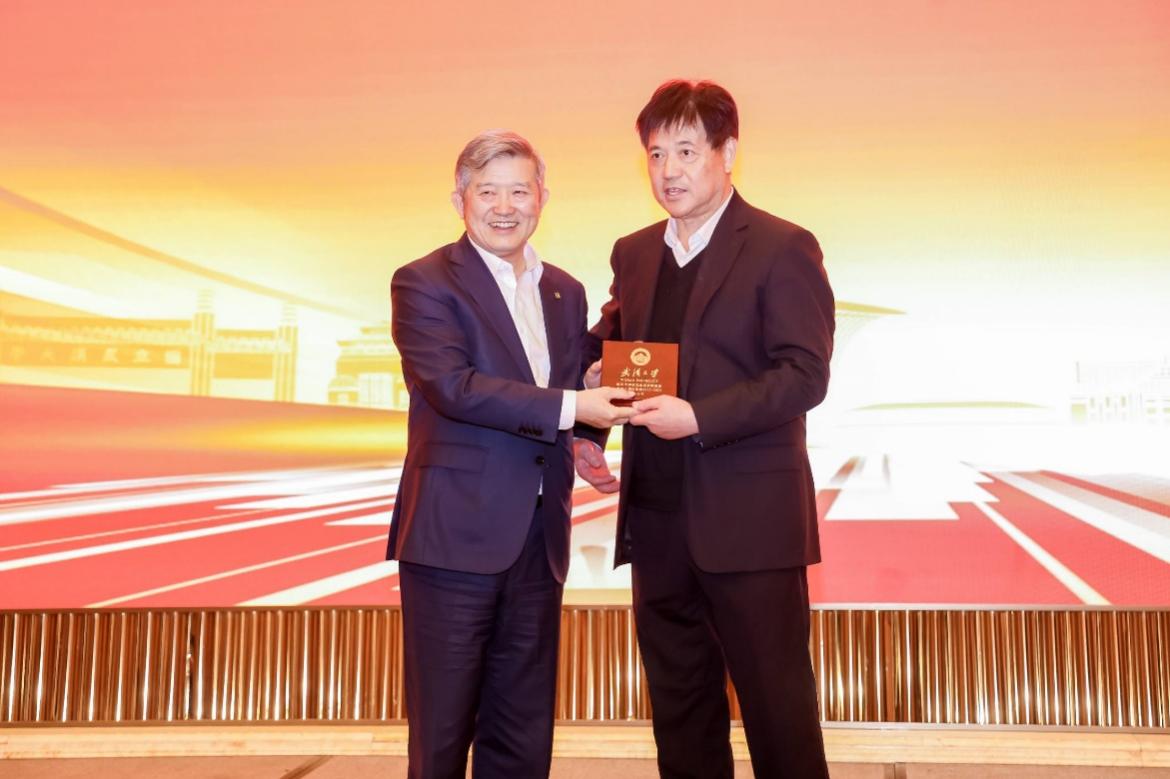 28日上午,高作平董事長參加“武漢大學(xué)130周年校慶捐贈簽約暨教育貢獻(xiàn)獎頒獎儀式”。校黨委書記黃泰巖、校長張平文、副校長唐其柱、副校長李資遠(yuǎn)、校黨委副書記屈文謙、副校長朱德友,學(xué)校各學(xué)院和相關(guān)職能部門負(fù)責(zé)人參加活動。活動由李資遠(yuǎn)副校長主持。張平文校長為高作平董事長頒發(fā)了“武漢大學(xué)教育貢獻(xiàn)獎”。