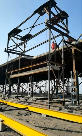 天窗架天溝板拆除吊裝 鋼滑道上、下托盤的安裝