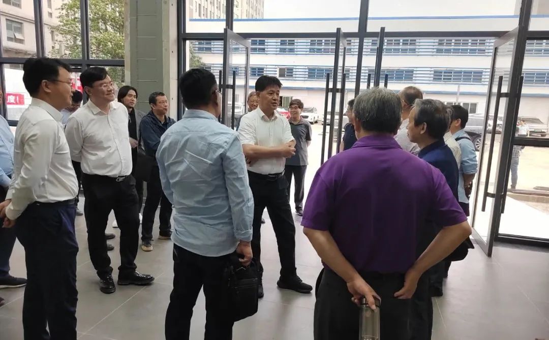 隨后參訪團回到巨成科技園,巨成董事長高作平教授帶領大家參觀了鋼滑道同步頂升工程試驗原址展,向大家介紹了鋼滑道同步頂升試驗的相關內容,并就應用場景和工程情況與來賓們進行了交流。此項技術能夠在老舊小區改造、工業建構筑物改造等領域發揮重大作用。