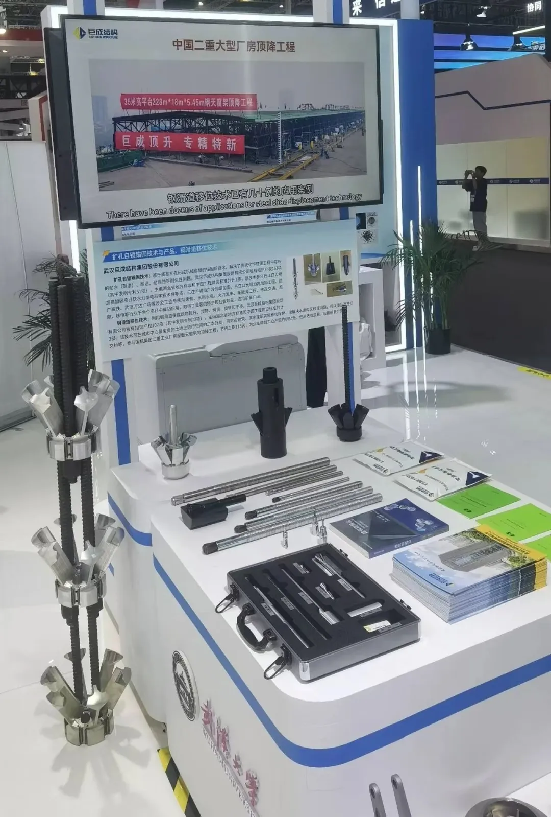 9月23日至27日,第二十五屆中國國際工業(yè)博覽會在上海國家會展中心盛大舉辦,巨成結(jié)構(gòu)作為武漢大學(xué)孵化的創(chuàng)新企業(yè)受邀參展。在科技創(chuàng)新展區(qū)武漢大學(xué)展館內(nèi),巨成結(jié)構(gòu)集中展示了鋼滑道移位技術(shù)、擴(kuò)孔自鎖錨固技術(shù)及配套產(chǎn)品,原武漢大學(xué)校董、巨成結(jié)構(gòu)董事長高作平教授親臨展位交流指導(dǎo)。
